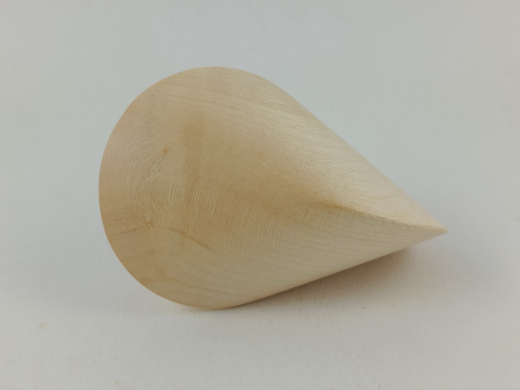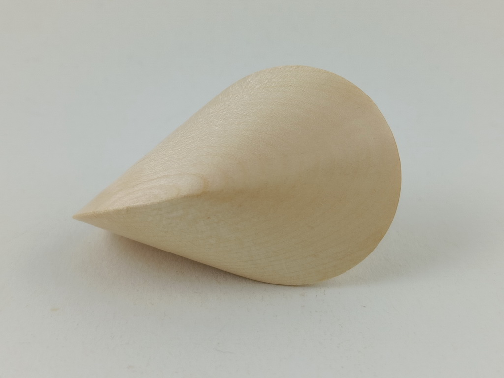 Dieses Ahornholzoloid ist ein Unikat. Verkauft wird genau das auf den Bildern gezeigte Oloid. Es wurde in mühevoller Handarbeit aus einem besonderen Stück Ahornholz herausgearbeitet. Von groben Holzarbeiten mit der Säge weiter über verschiedene Schleifvorgänge bis hin zu einem Endschliff mit einer 1000er Körnung erfolgte das Finish mit dem Polierfilz. Für den Schutz werden ein Naturöl und Hartwachs verwendet.