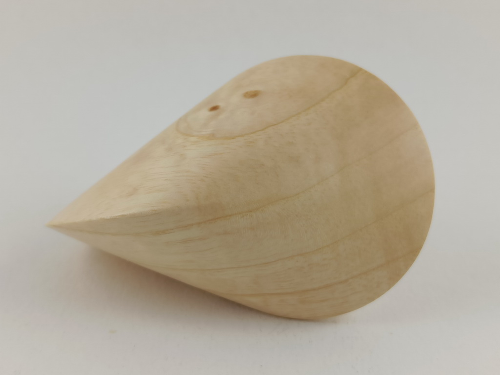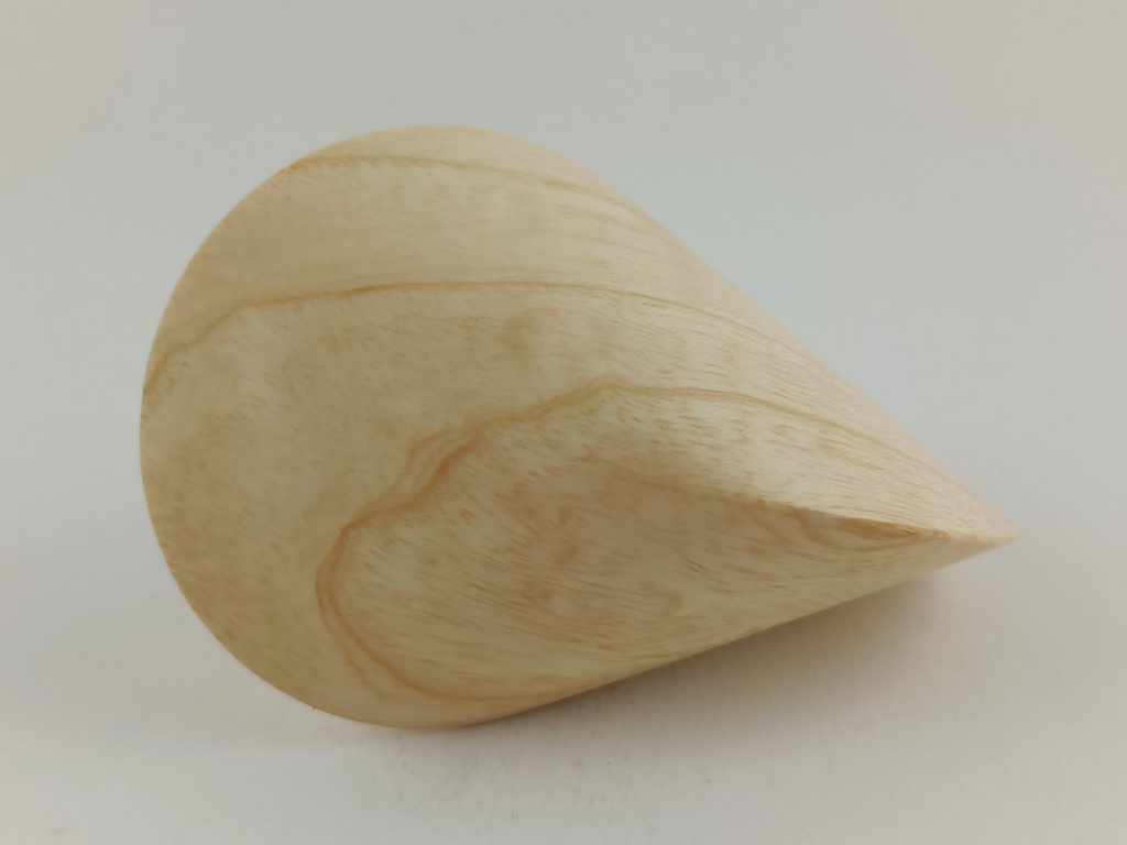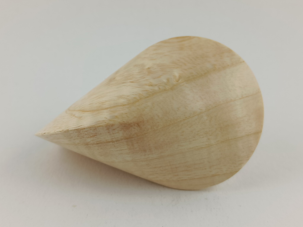 Dieses Ahornholzoloid ist ein Unikat. Verkauft wird genau das auf den Bildern gezeigte Oloid. Es wurde in mühevoller Handarbeit aus einem ganz besonderen Stück Ahornholz herausgearbeitet. Von groben Holzarbeiten mit der Säge weiter über verschiedene Schleifvorgänge bis hin zu einem Endschliff mit einer 1000er Körnung erfolgte das Finish mit dem Polierfilz. Für den Schutz werden ein Naturöl und Hartwachs verwendet.