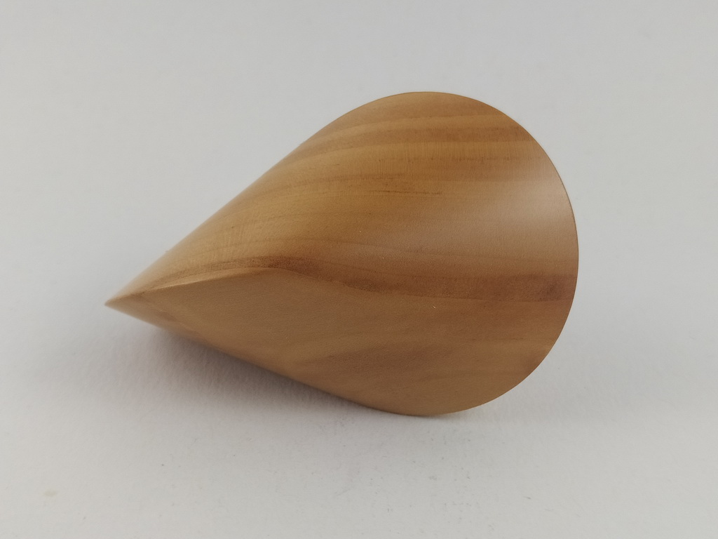 Das oben gezeigte Oloid ist ein Einzelstück und kann wegen den einzigartigen Merkmalen des Holzes nur einmal hergestellt und verkauft werden.