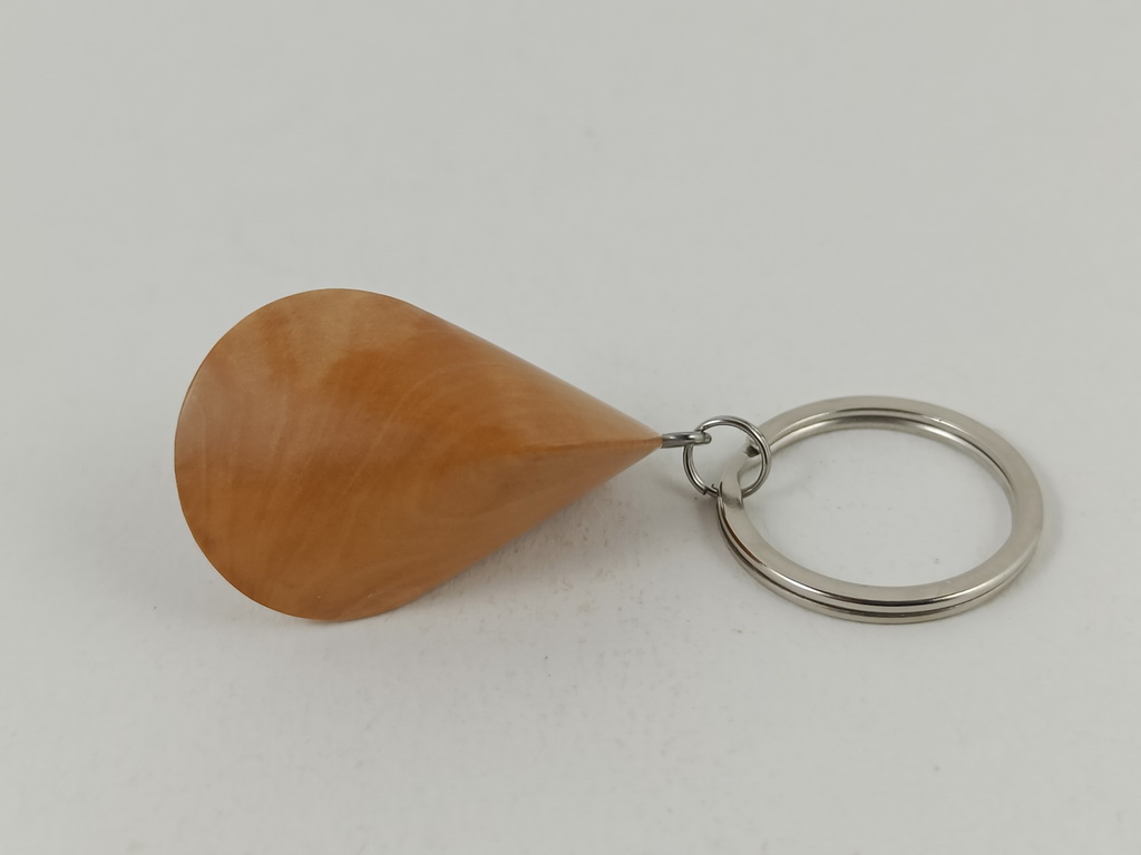 Dieses Apfelholzoloid, ausgeführt als Schlüsselanhänger, ist ein Unikat. Verkauft wird genau der auf den Bildern gezeigte Oloid-Schlüsselanhänger. Er wurde in mühevoller Handarbeit aus einem besonderen Stück Apfelholz herausgearbeitet und zu diesem Produkt vollendet.