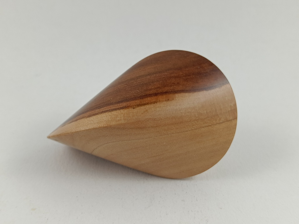 Das oben gezeigte Oloid ist ein Einzelstück und kann wegen den einzigartigen Merkmalen des Holzes nur einmal hergestellt und verkauft werden.