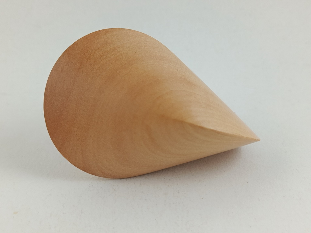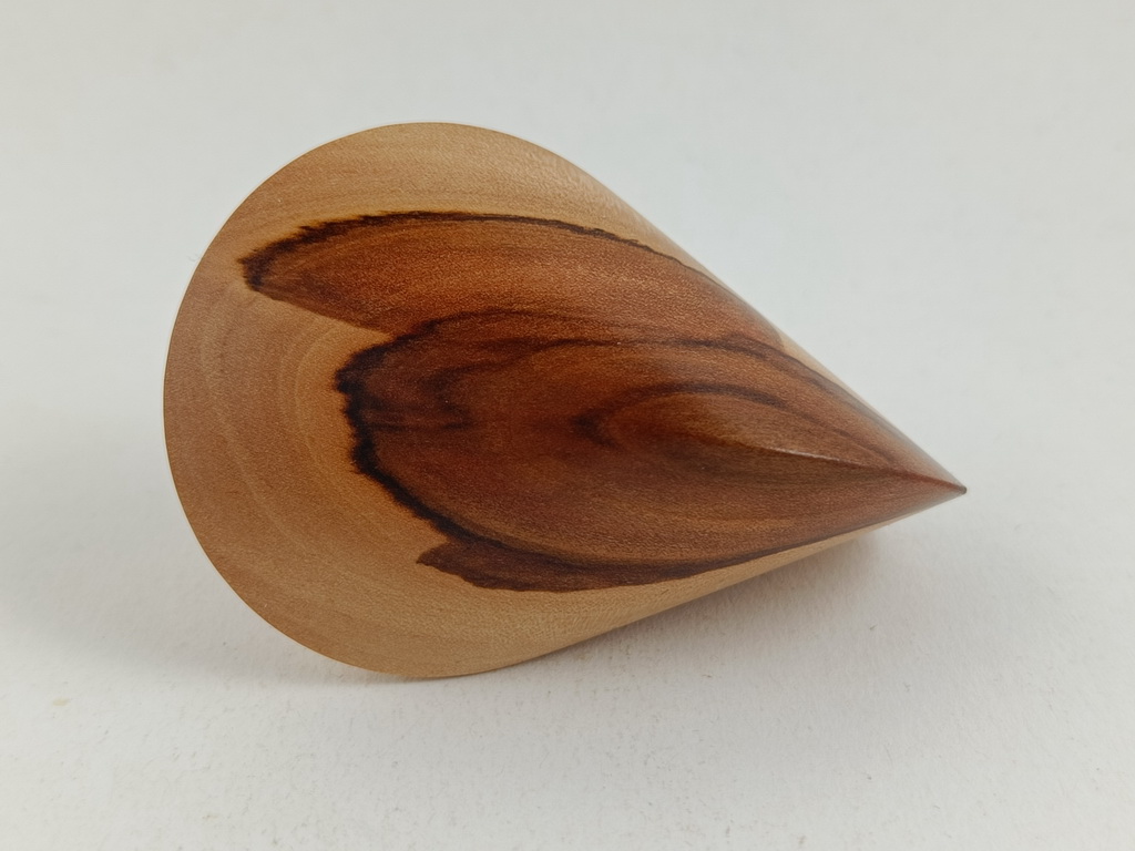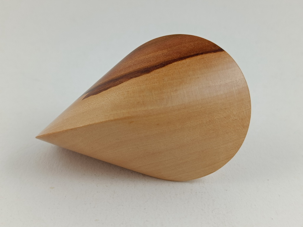 Das oben gezeigte Oloid ist ein Einzelstück und kann wegen den einzigartigen Merkmalen des Holzes nur einmal hergestellt und verkauft werden.