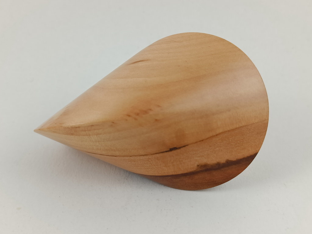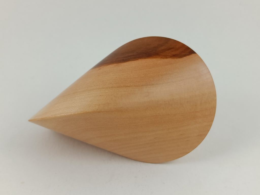 Das oben gezeigte Oloid ist ein Einzelstück und kann wegen den einzigartigen Merkmalen des Holzes nur einmal hergestellt und verkauft werden.
