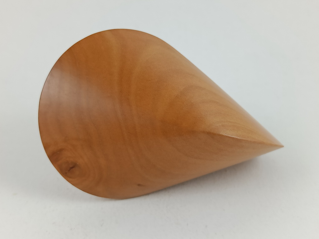 Das oben gezeigte Oloid ist ein Einzelstück und kann wegen den einzigartigen Merkmalen des Holzes nur einmal hergestellt und verkauft werden.