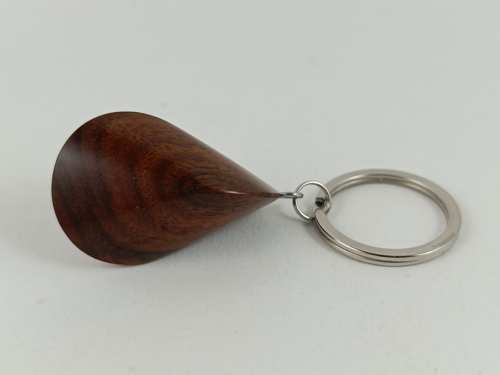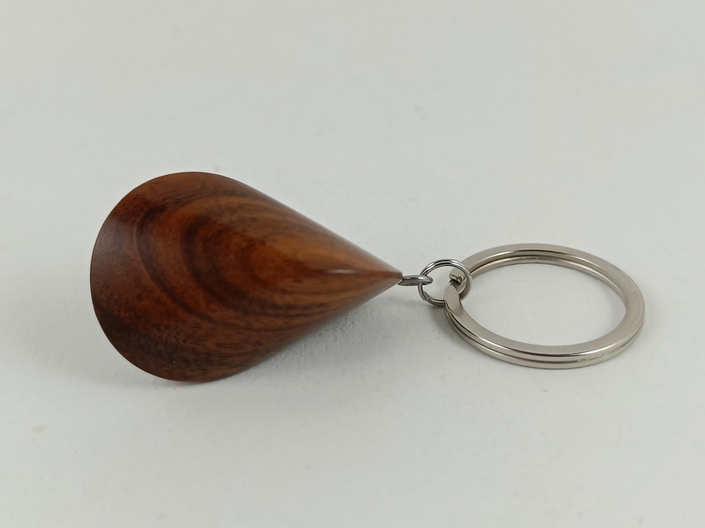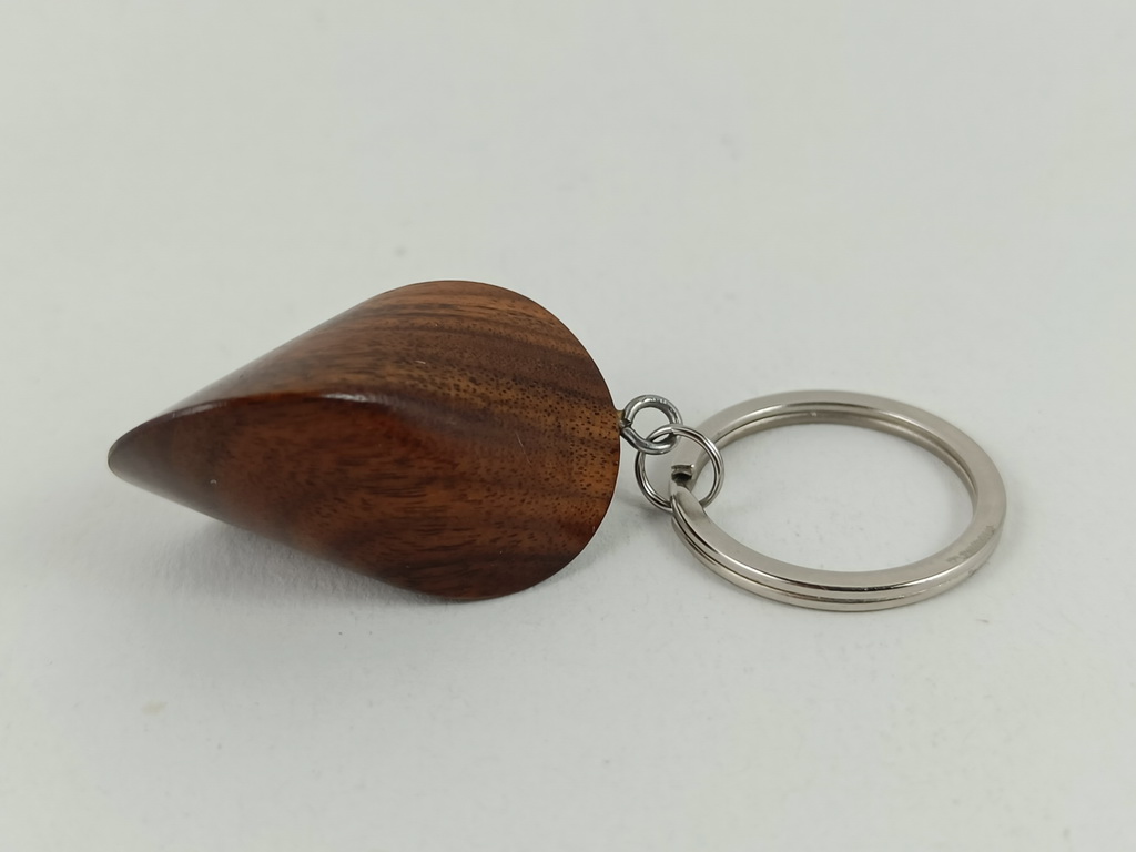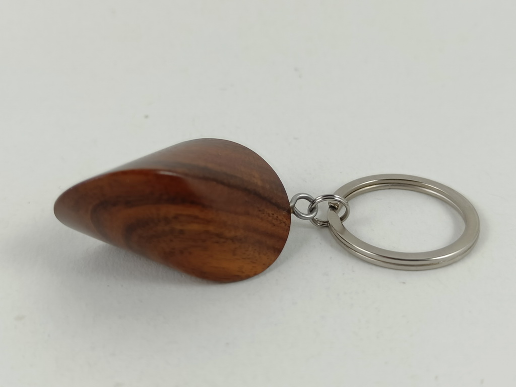 Das oben gezeigte Oloid ist ein Einzelstück und kann wegen den einzigartigen Merkmalen des Holzes nur einmal in dieser abgebildeten Art hergestellt und verkauft werden. Der Schlüsselanhänger kann auch als Halsschmuck getragen werden.