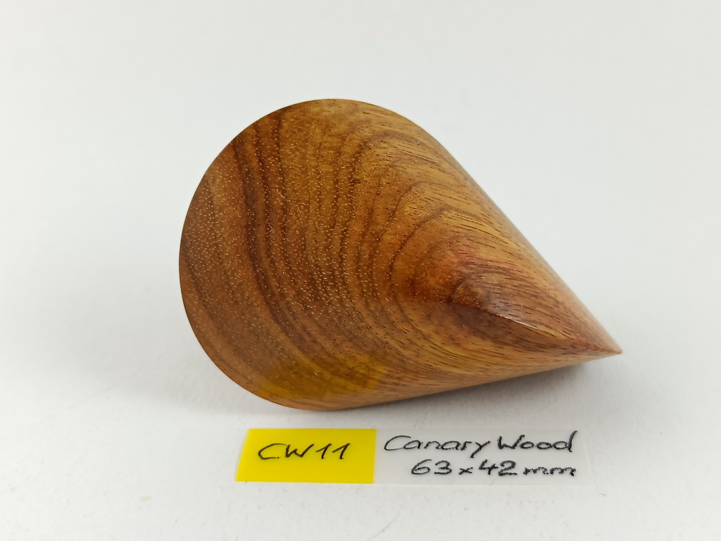 Dieses CanaryWood-Oloid ist ein Unikat. Verkauft wird genau das auf den Bildern gezeigte Oloid. Es wurde in mühevoller Handarbeit aus einem ganz besonderen Stück CanaryWood herausgearbeitet. Von groben Holzarbeiten mit der Säge weiter über verschiedene Schleifvorgänge bis hin zu einem Endschliff mit einer 1000er Körnung erfolgte das Finish mit dem Polierfilz. Für den Schutz werden ein Naturöl und Hartwachs verwendet.