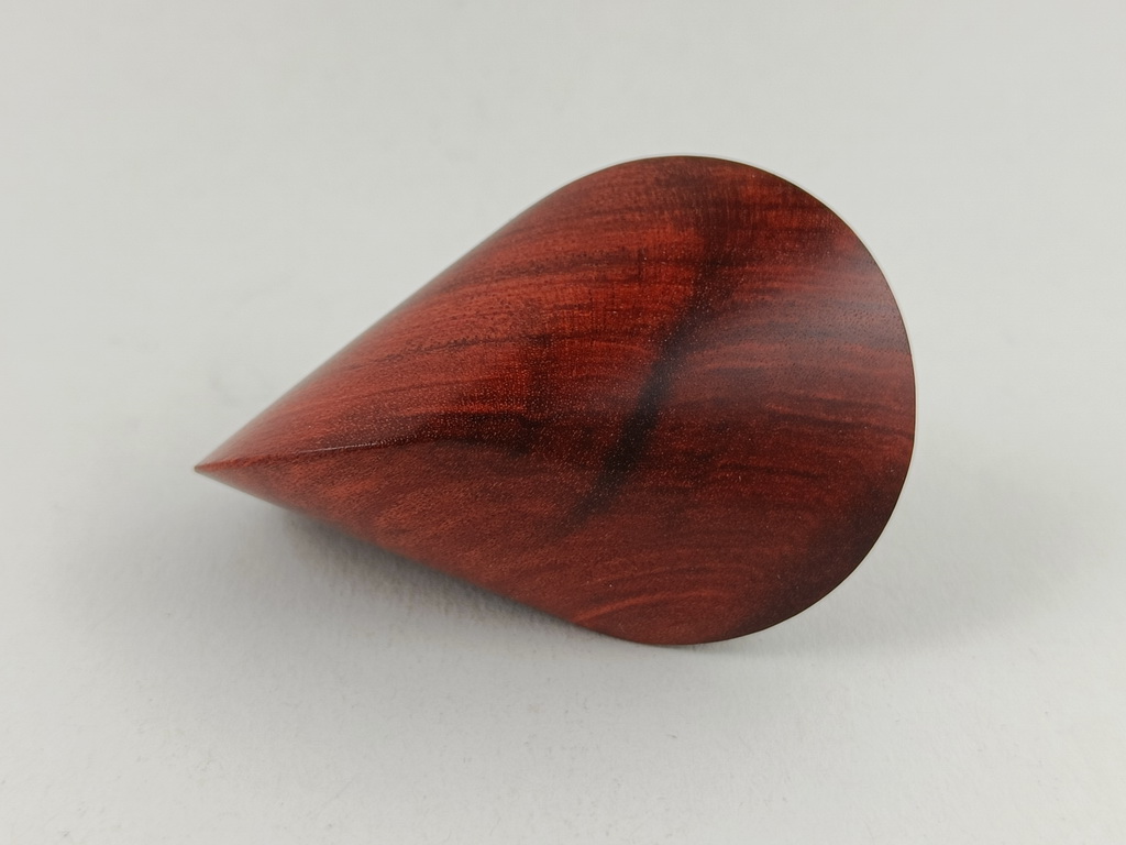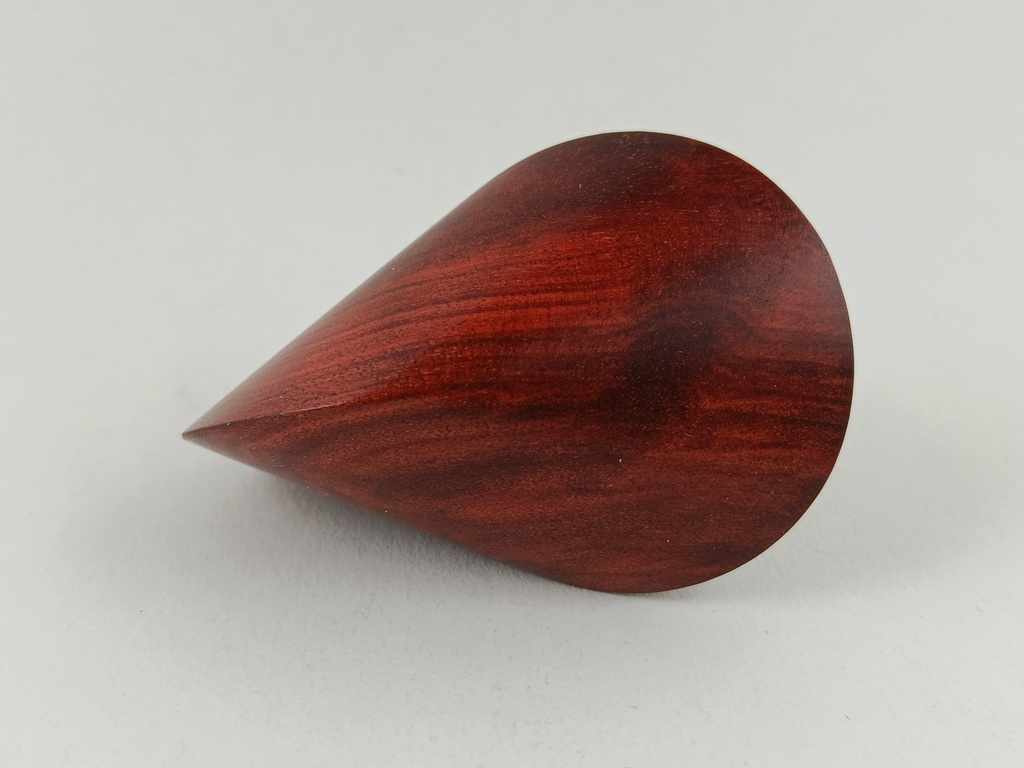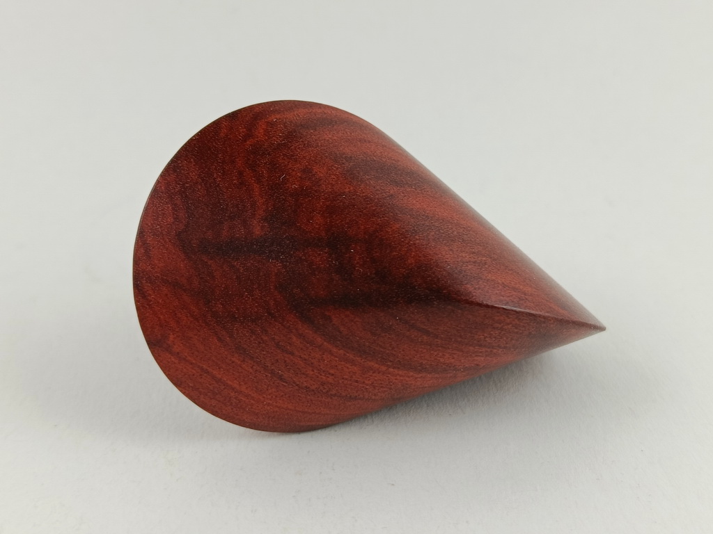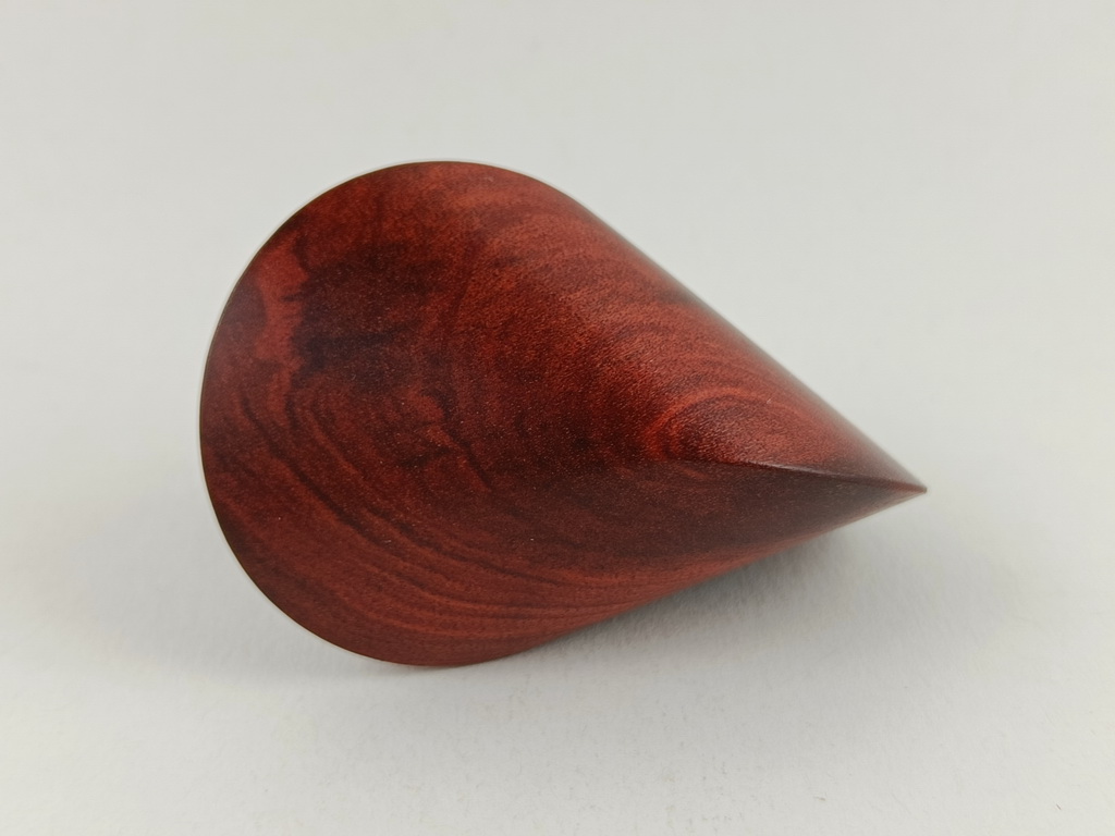 Dieses Chakte-Kokholzoloid ist ein Unikat. Verkauft wird genau das auf den Bildern gezeigte Oloid. Es wurde in mühevoller Handarbeit aus einem ganz besonderen Stück Chakte-Kok- oder Red-Heartholz herausgearbeitet. Von groben Holzarbeiten mit der Säge weiter über verschiedene Schleifvorgänge bis hin zu einem Endschliff mit einer 1000er Körnung erfolgte das Finish mit dem Polierfilz. Für den Schutz werden ein Naturöl und Hartwachs verwendet.