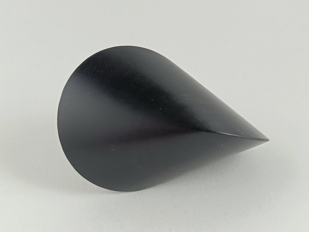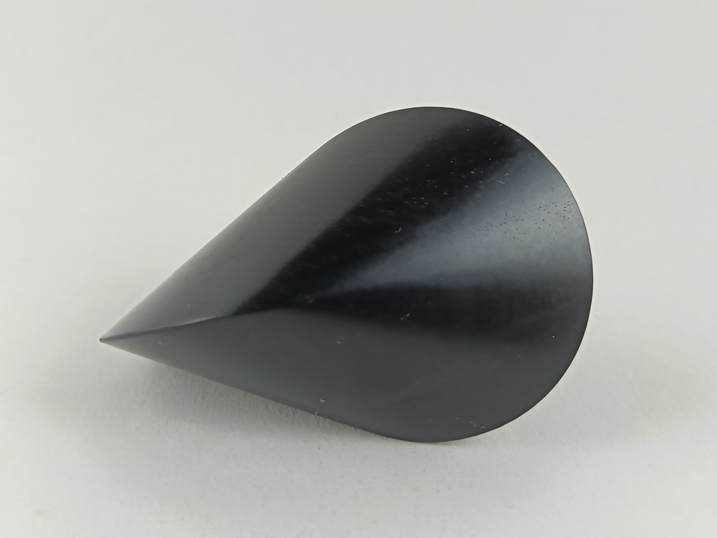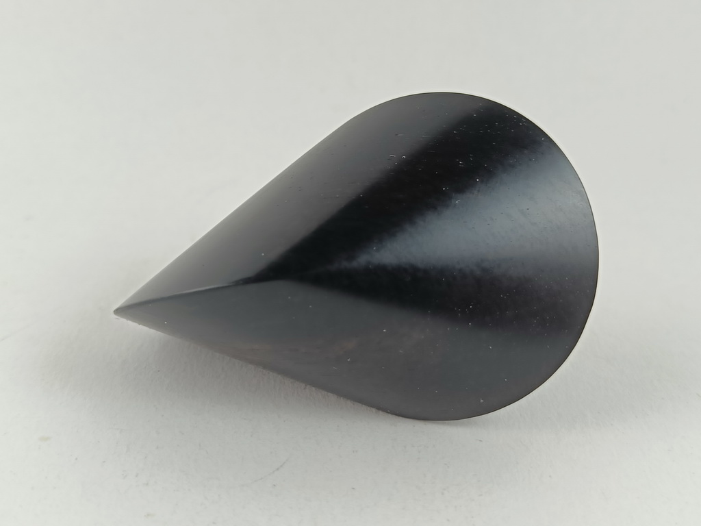 Dieses Ebenholzoloid ist ein Unikat. Verkauft wird genau das auf den Bildern gezeigte Oloid. Es wurde in mühevoller Handarbeit aus einem ganz besonderen Stück Ebenholz herausgearbeitet. Von groben Holzarbeiten mit der Säge weiter über verschiedene Schleifvorgänge bis hin zu einem Endschliff mit einer 1000er Körnung erfolgte das Finish mit dem Polierfilz. Für den Schutz werden ein Naturöl und Hartwachs verwendet.