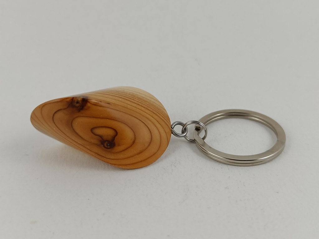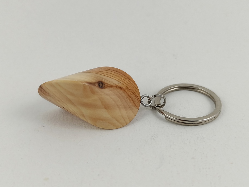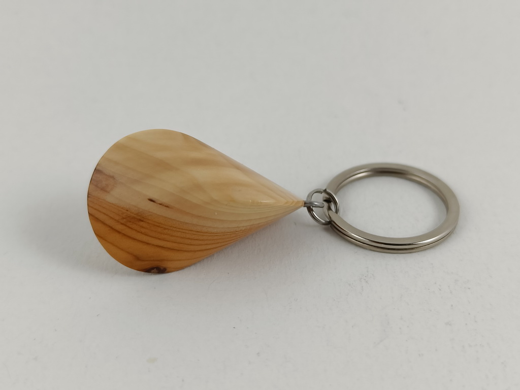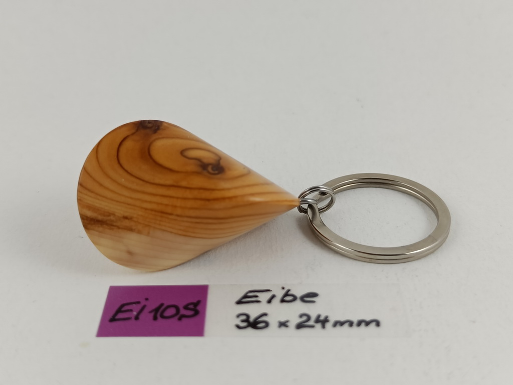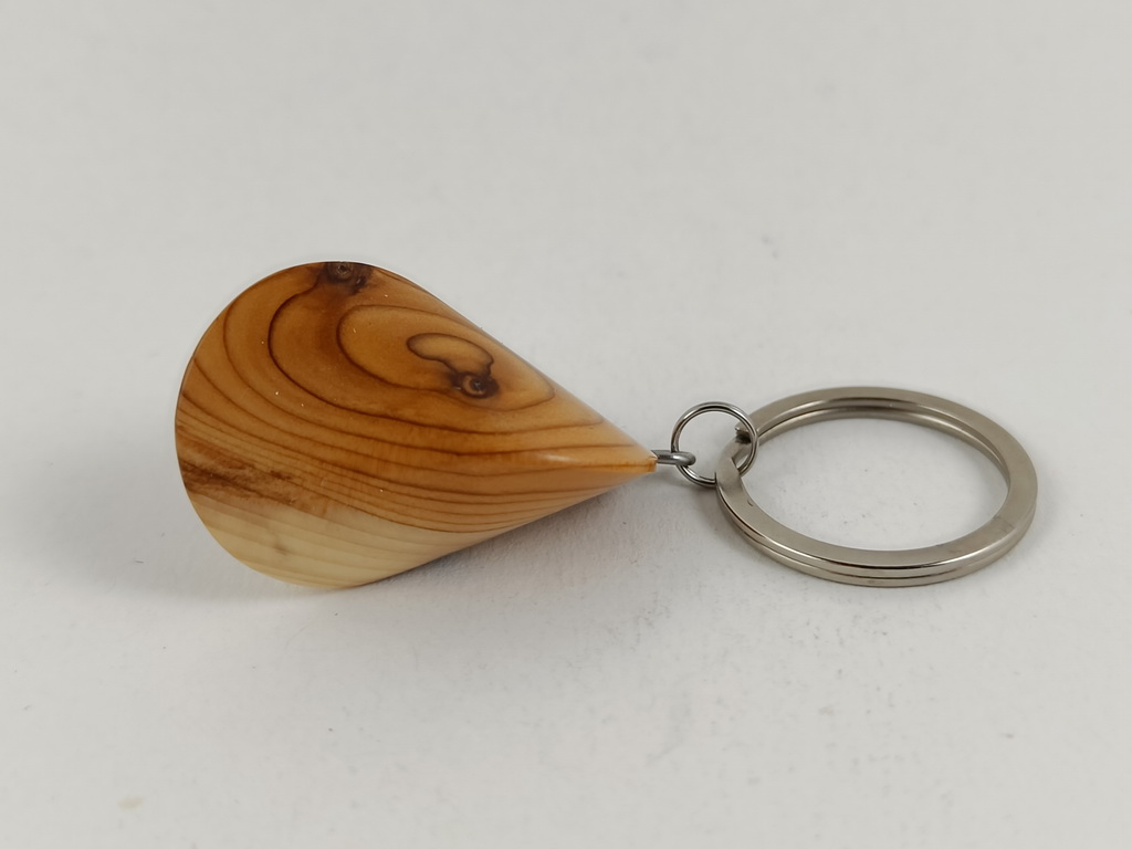 Dieses Eibenholzoloid, ausgeführt als Schlüsselanhänger, ist ein Unikat. Verkauft wird genau der auf den Bildern gezeigte Oloid-Schlüsselanhänger. Er wurde in mühevoller Handarbeit aus einem besonderen Stück Eibenholz herausgearbeitet und zu diesem Produkt vollendet.