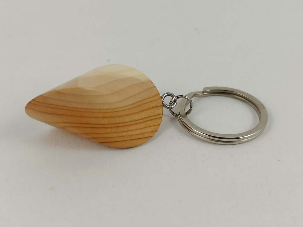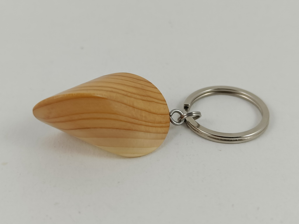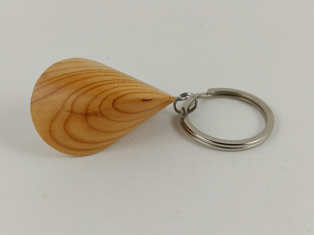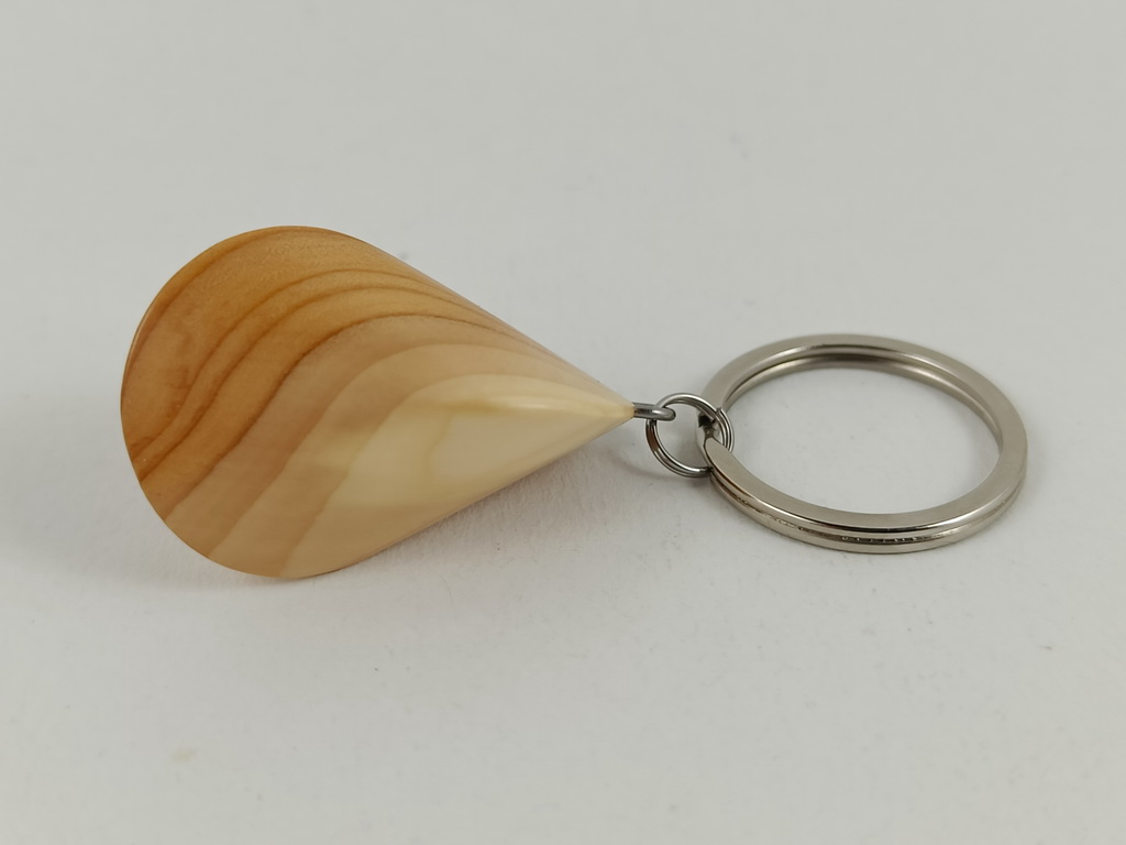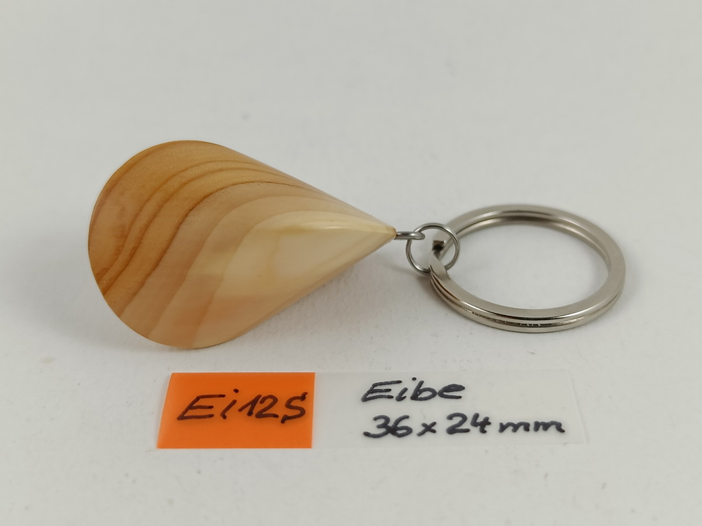 Dieses Eibenholzoloid, ausgeführt als Schlüsselanhänger, ist ein Unikat. Verkauft wird genau der auf den Bildern gezeigte Oloid-Schlüsselanhänger. Er wurde in mühevoller Handarbeit aus einem besonderen Stück Eibenholz herausgearbeitet und zu diesem Produkt vollendet.