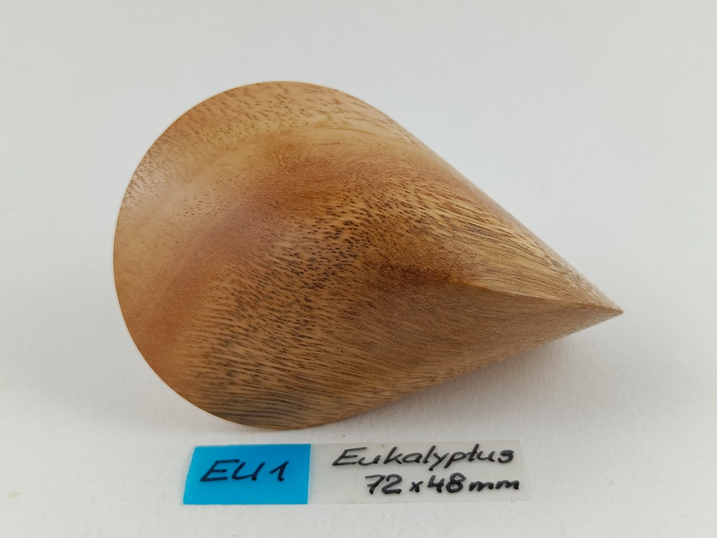 Dieses Eukalyptusholzoloid ist ein Unikat. Verkauft wird genau das auf den Bildern gezeigte Oloid. Es wurde in mühevoller Handarbeit aus einem ganz besonderen Stück Eukalyptusholz herausgearbeitet. Von groben Holzarbeiten mit der Säge weiter über verschiedene Schleifvorgänge bis hin zu einem Endschliff mit einer 1000er Körnung erfolgte das Finish mit dem Polierfilz. Für den Schutz werden ein Naturöl und Hartwachs verwendet.
