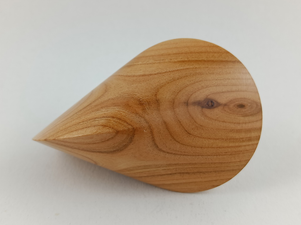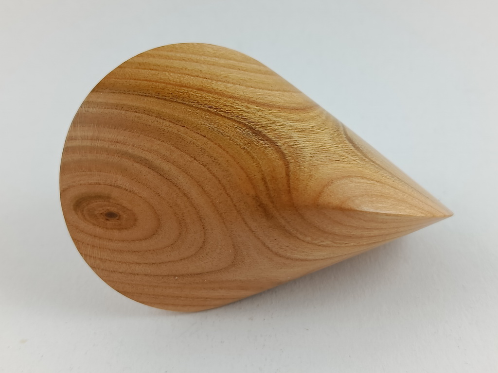 Dieses Kirschbaumholzoloid ist ein Unikat. Verkauft wird genau das auf den Bildern gezeigte Oloid. Es wurde in mühevoller Handarbeit aus einem ganz besonderen Stück Kirschbaumholz herausgearbeitet. Von groben Holzarbeiten mit der Säge weiter über verschiedene Schleifvorgänge bis hin zu einem Endschliff mit einer 1000er Körnung erfolgte das Finish mit dem Polierfilz. Für den Schutz werden ein Naturöl und Hartwachs verwendet.
