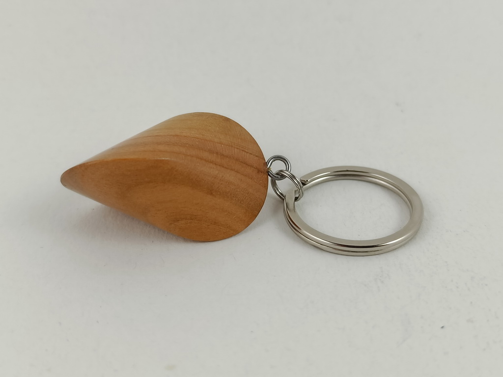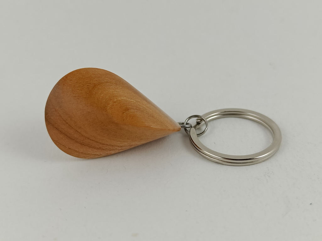 Dieses Kirschholzoloid, ausgeführt als Schlüsselanhänger, ist ein Unikat. Verkauft wird genau der auf den Bildern gezeigte Oloid-Schlüsselanhänger. Er wurde in mühevoller Handarbeit aus einem besonderen Stück Kirschholz herausgearbeitet und zu diesem Produkt vollendet.