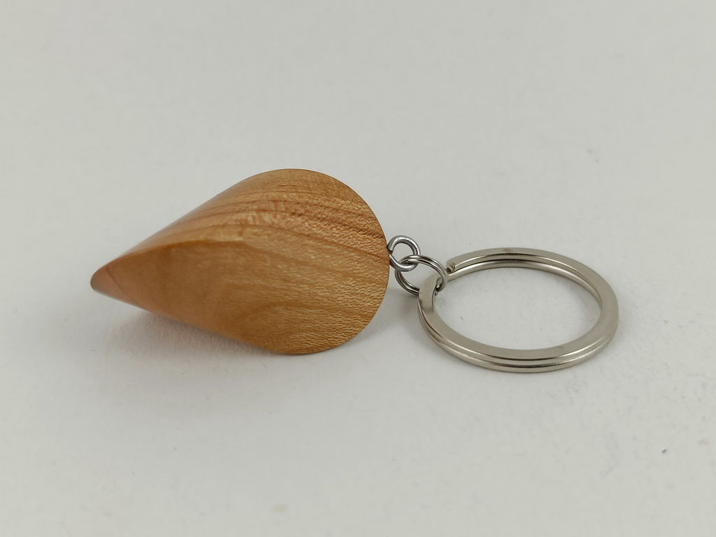 Das oben gezeigte Oloid ist ein Einzelstück und kann wegen den einzigartigen Merkmalen des Holzes nur einmal in dieser abgebildeten Art hergestellt und verkauft werden. Der Schlüsselanhänger kann auch als Halsschmuck getragen werden.