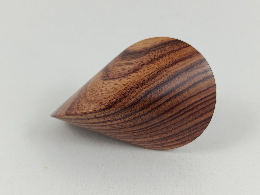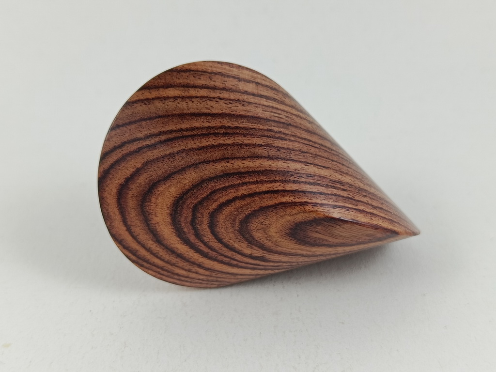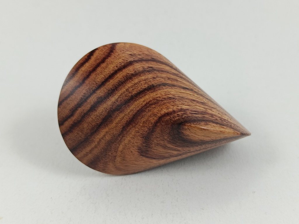 Das oben gezeigte Oloid ist ein Einzelstück und kann wegen der einzigartigen Merkmale des Holzes nur einmal in dieser abgebildeten Art hergestellt und verkauft werden.