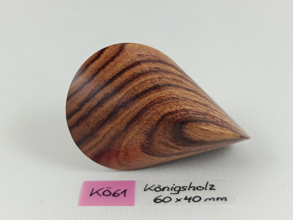 Dieses Königsholzoloid ist ein Unikat. Verkauft wird genau das auf den Bildern gezeigte Oloid. Es wurde in mühevoller Handarbeit aus einem ganz besonderen Stück Königs- oder Veilchenholz herausgearbeitet. Von groben Holzarbeiten mit der Säge weiter über verschiedene Schleifvorgänge bis hin zu einem Endschliff mit einer 1000er Körnung erfolgte das Finish mit dem Polierfilz. Für den Schutz werden ein Naturöl und Hartwachs verwendet.