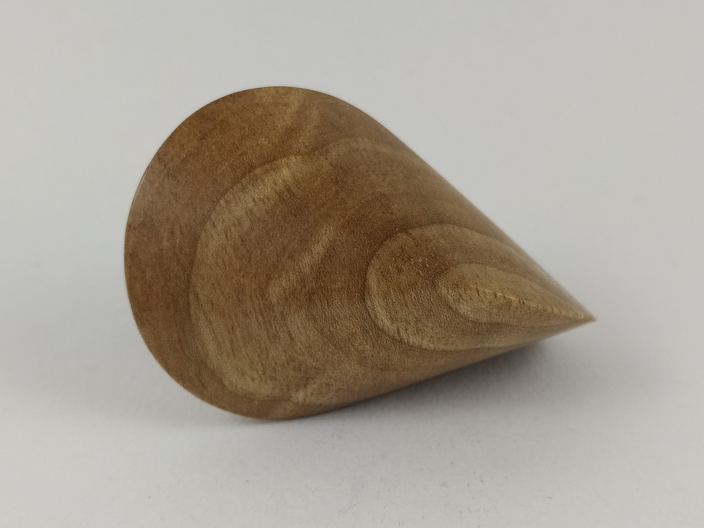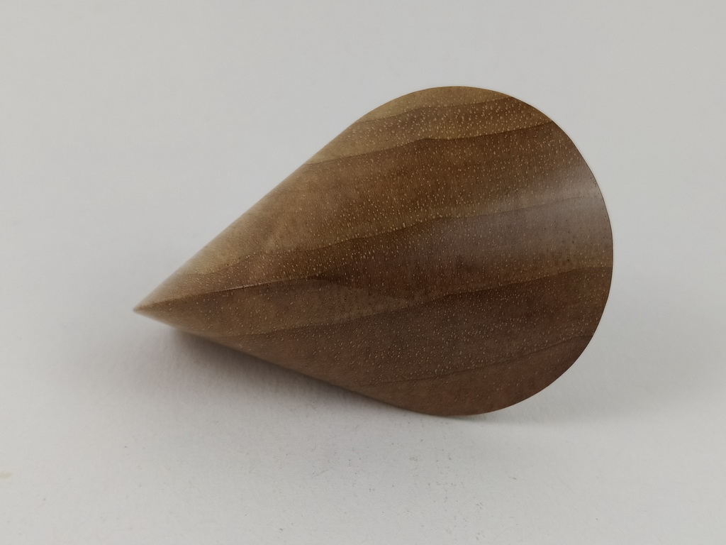 Das oben gezeigte Oloid ist ein Einzelstück und kann wegen den einzigartigen Merkmalen des Holzes nur einmal hergestellt und verkauft werden.