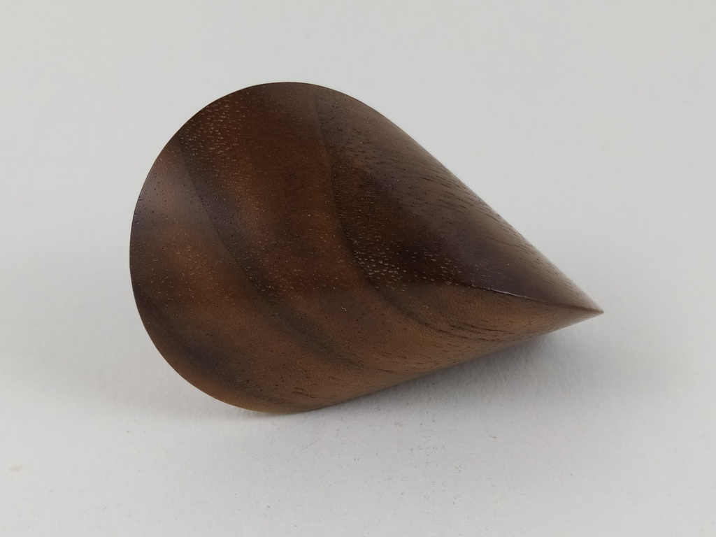 Das oben gezeigte Oloid ist ein Einzelstück und kann wegen den einzigartigen Merkmalen des Holzes nur einmal hergestellt und verkauft werden.