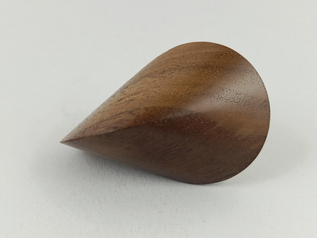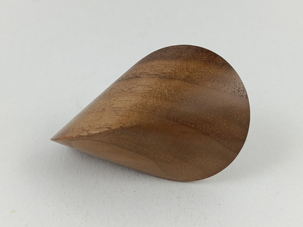 Das oben gezeigte Oloid ist ein Einzelstück und kann wegen den einzigartigen Merkmalen des Holzes nur einmal hergestellt und verkauft werden.