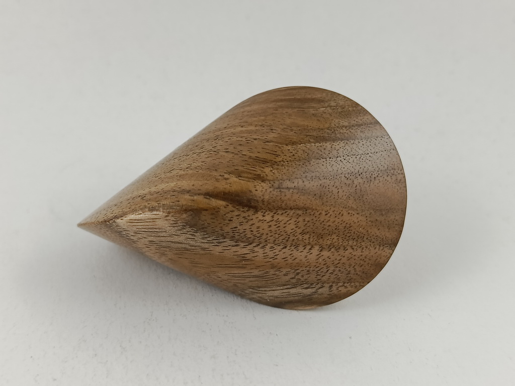 Das oben gezeigte Oloid ist ein Einzelstück und kann wegen den einzigartigen Merkmalen des Holzes nur einmal hergestellt und verkauft werden.