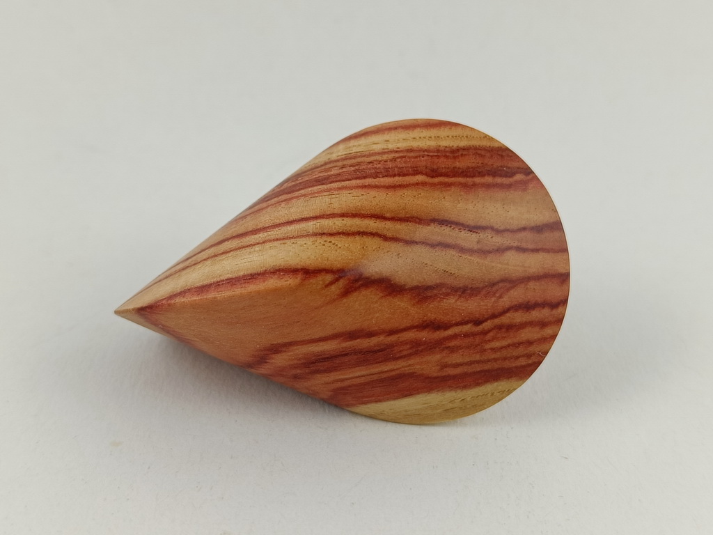 Das oben gezeigte Oloid ist ein Einzelstück und kann wegen der einzigartigen Merkmale des Holzes nur einmal in dieser abgebildeten Art hergestellt und verkauft werden.