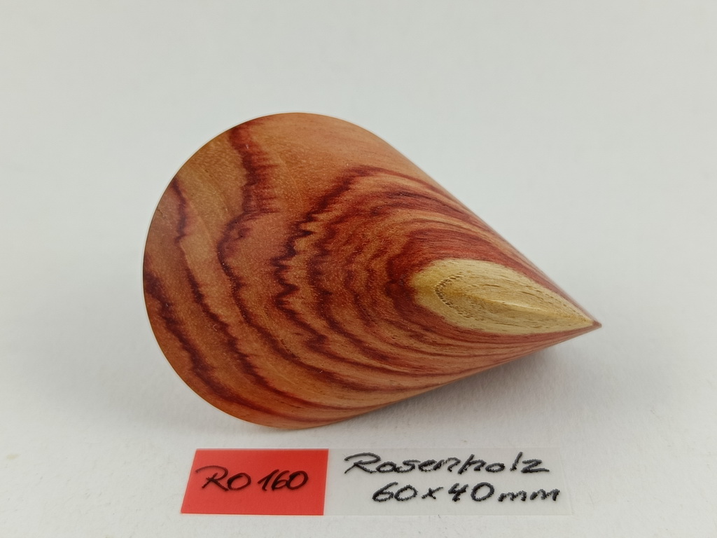 Dieses Rosenholzoloid ist ein Unikat. Verkauft wird genau das auf den Bildern gezeigte Oloid. Es wurde in mühevoller Handarbeit aus einem besonderen Stück Bahia-Rosenholz herausgearbeitet. Von groben Holzarbeiten mit der Säge weiter über verschiedene Schleifvorgänge bis hin zu einem Endschliff mit einer 1000er Körnung erfolgte das Finish mit dem Polierfilz. Für den Schutz werden ein Naturöl und Hartwachs verwendet.