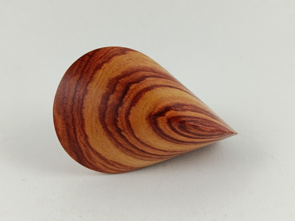 Das oben gezeigte Oloid ist ein Einzelstück und kann wegen der einzigartigen Merkmale des Holzes nur einmal in dieser abgebildeten Art hergestellt und verkauft werden.