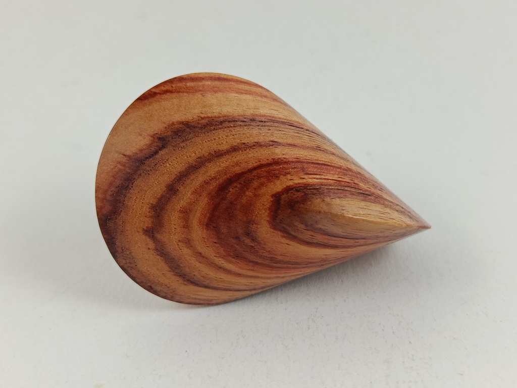 Das oben gezeigte Oloid ist ein Einzelstück und kann wegen der einzigartigen Merkmale des Holzes nur einmal in dieser abgebildeten Art hergestellt und verkauft werden.