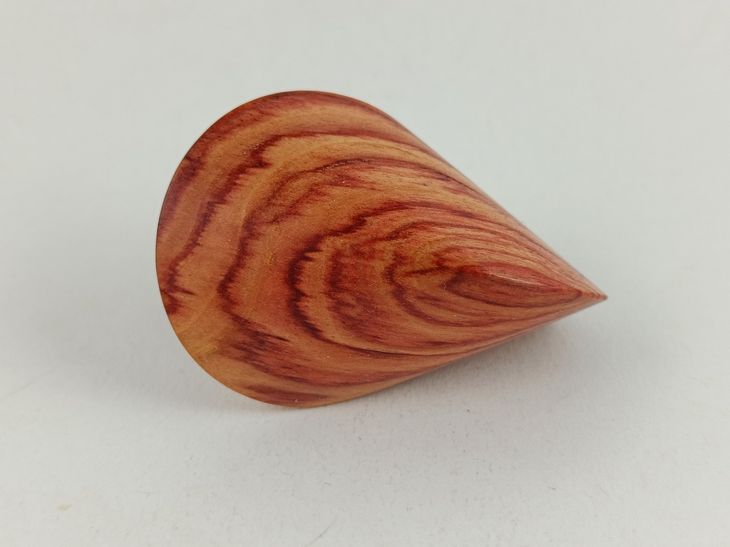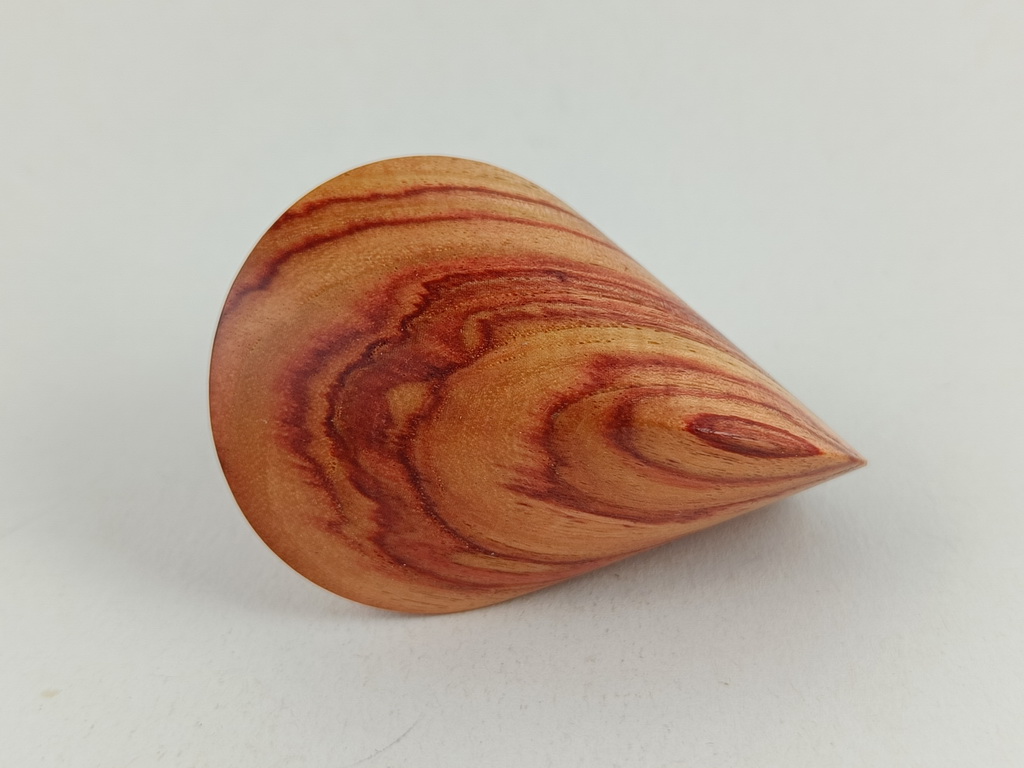 Das oben gezeigte Oloid ist ein Einzelstück und kann wegen der einzigartigen Merkmale des Holzes nur einmal in dieser abgebildeten Art hergestellt und verkauft werden.