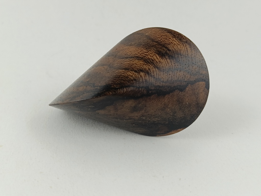 Das oben gezeigte Oloid ist ein Einzelstück und kann wegen der einzigartigen Merkmale des Holzes nur einmal in dieser abgebildeten Art hergestellt und verkauft werden.