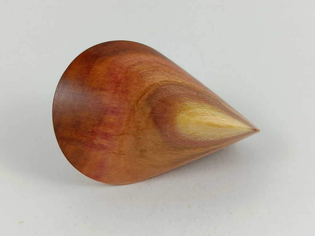 Dieses Zwetschgenholzoloid ist ein Unikat. Verkauft wird genau das auf den Bildern gezeigte Oloid. Es wurde in mühevoller Handarbeit aus einem ganz besonderen Stück Zwetschgenholz herausgearbeitet. Von groben Holzarbeiten mit der Säge weiter über verschiedene Schleifvorgänge bis hin zu einem Endschliff mit einer 1000er Körnung erfolgte das Finish mit dem Polierfilz. Für den Schutz werden ein Naturöl und Hartwachs verwendet.
