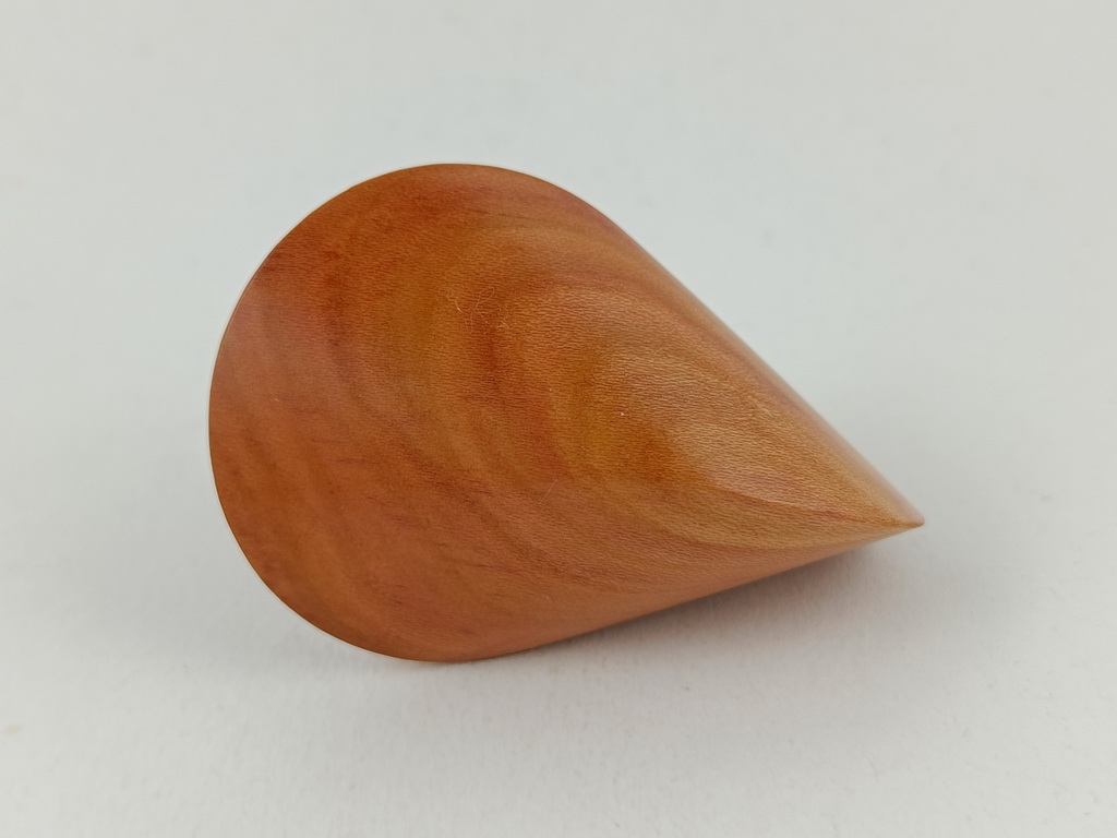 Dieses Zwetschgenholzoloid ist ein Unikat. Verkauft wird genau das auf den Bildern gezeigte Oloid. Es wurde in mühevoller Handarbeit aus einem besonderen Stück Zwetschgenholz herausgearbeitet. Von groben Holzarbeiten mit der Säge weiter über verschiedene Schleifvorgänge bis hin zu einem Endschliff mit einer 1000er Körnung erfolgte das Finish mit dem Polierfilz. Für den Schutz werden ein Naturöl und Hartwachs verwendet.