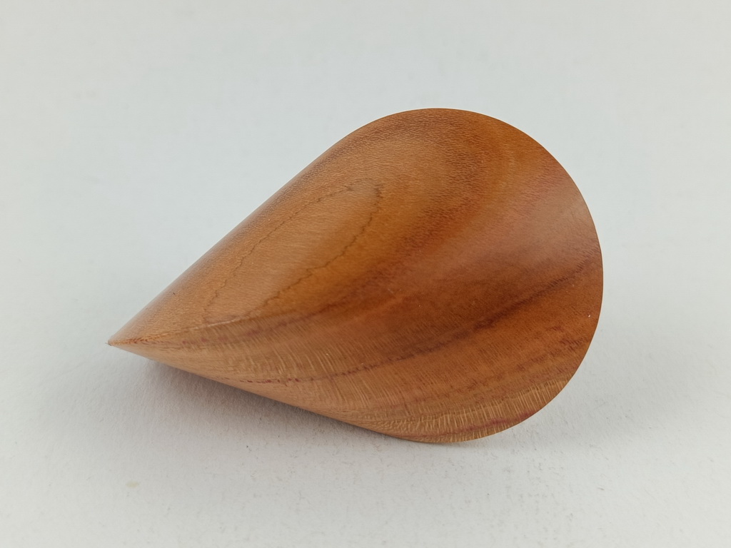 Das oben gezeigte Oloid ist ein Einzelstück und kann wegen den einzigartigen Merkmalen des Holzes nur einmal hergestellt und verkauft werden.