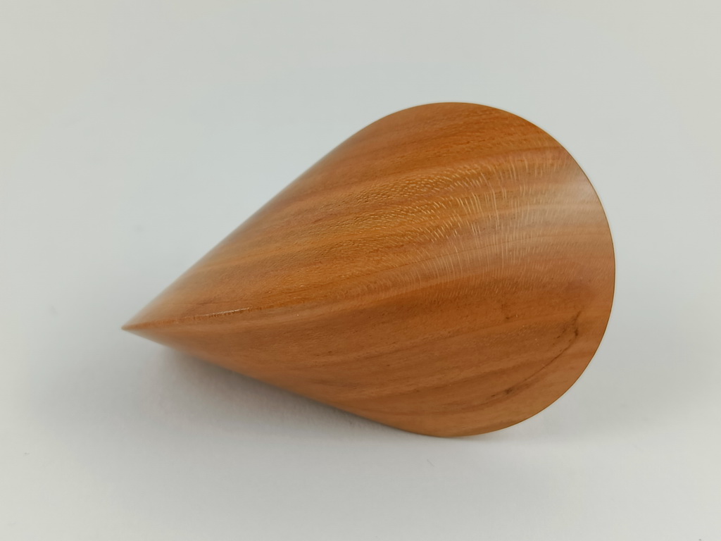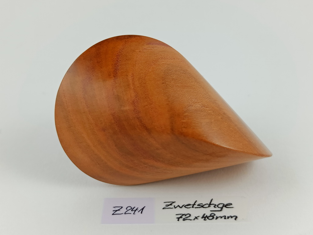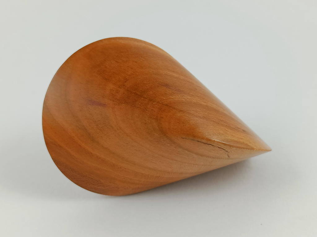 Dieses Zwetschgenholzoloid ist ein Unikat. Verkauft wird genau das auf den Bildern gezeigte Oloid. Es wurde in mühevoller Handarbeit aus einem besonderen Stück Zwetschgenholz herausgearbeitet. Von groben Holzarbeiten mit der Säge weiter über verschiedene Schleifvorgänge bis hin zu einem Endschliff mit einer 1000er Körnung erfolgte das Finish mit dem Polierfilz. Für den Schutz werden ein Naturöl und Hartwachs verwendet.