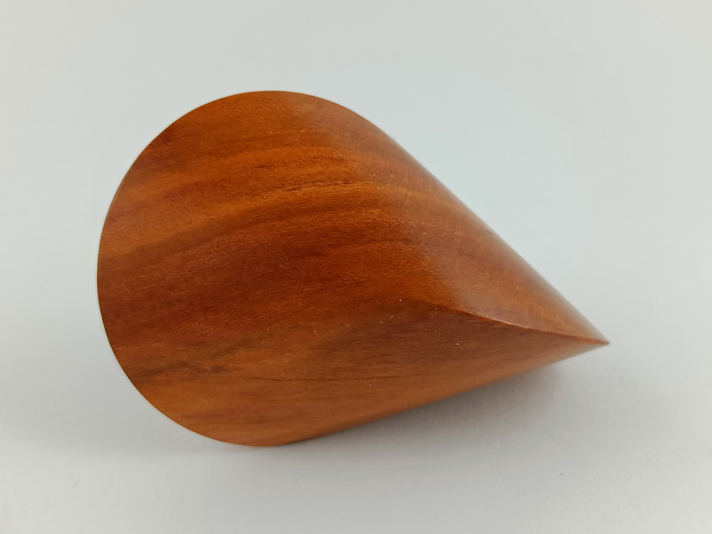 Das oben gezeigte Oloid ist ein Einzelstück und kann wegen den einzigartigen Merkmalen des Holzes nur einmal hergestellt und verkauft werden.