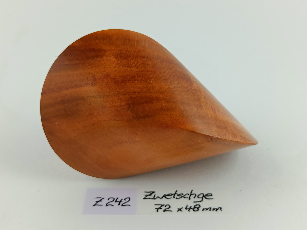 Dieses Zwetschgenholzoloid ist ein Unikat. Verkauft wird genau das auf den Bildern gezeigte Oloid. Es wurde in mühevoller Handarbeit aus einem besonderen Stück Zwetschgenholz herausgearbeitet. Von groben Holzarbeiten mit der Säge weiter über verschiedene Schleifvorgänge bis hin zu einem Endschliff mit einer 1000er Körnung erfolgte das Finish mit dem Polierfilz. Für den Schutz werden ein Naturöl und Hartwachs verwendet.