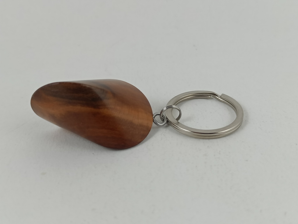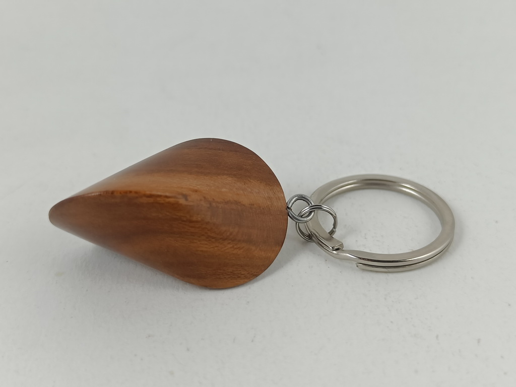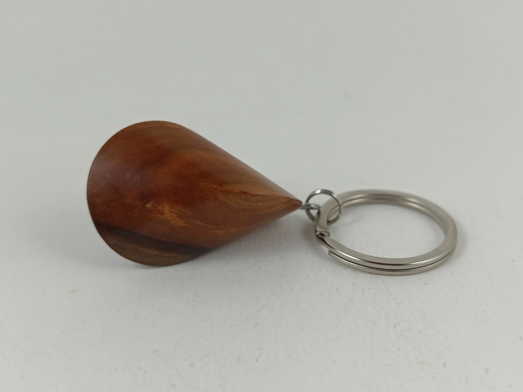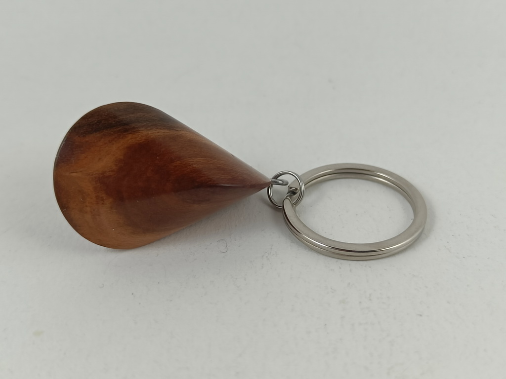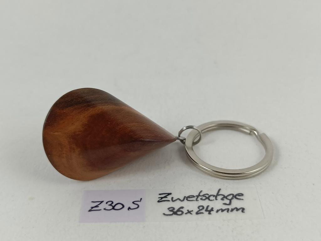 Dieses Zwetschgenholzoloid, ausgeführt als Schlüsselanhänger, ist ein Unikat. Verkauft wird genau der auf den Bildern gezeigte Oloid-Schlüsselanhänger. Er wurde in mühevoller Handarbeit aus einem Stück Zwetschgenholz herausgearbeitet und zu diesem Produkt vollendet.