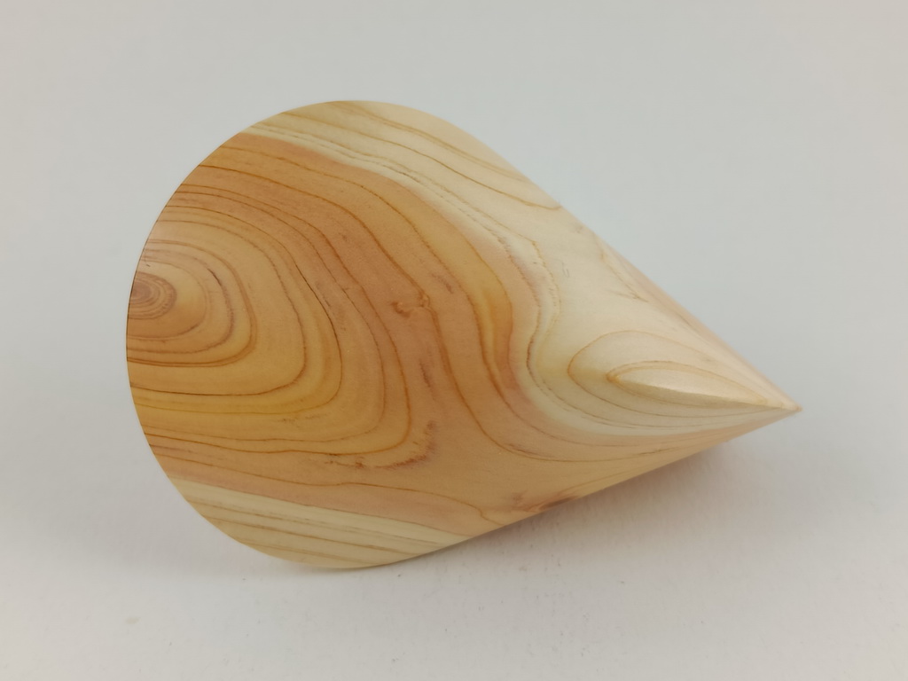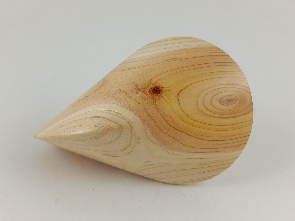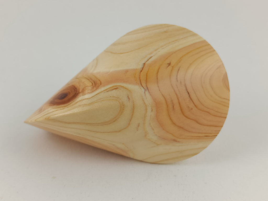 Dieses Zypressenholzoloid ist ein Unikat. Verkauft wird genau das auf den Bildern gezeigte Oloid. Es wurde in mühevoller Handarbeit aus einem ganz besonderen Stück Zypressenholz herausgearbeitet. Von groben Holzarbeiten mit der Säge weiter über verschiedene Schleifvorgänge bis hin zu einem Endschliff mit einer 1000er Körnung erfolgte das Finish mit dem Polierfilz. Für den Schutz werden ein Naturöl und Hartwachs verwendet.